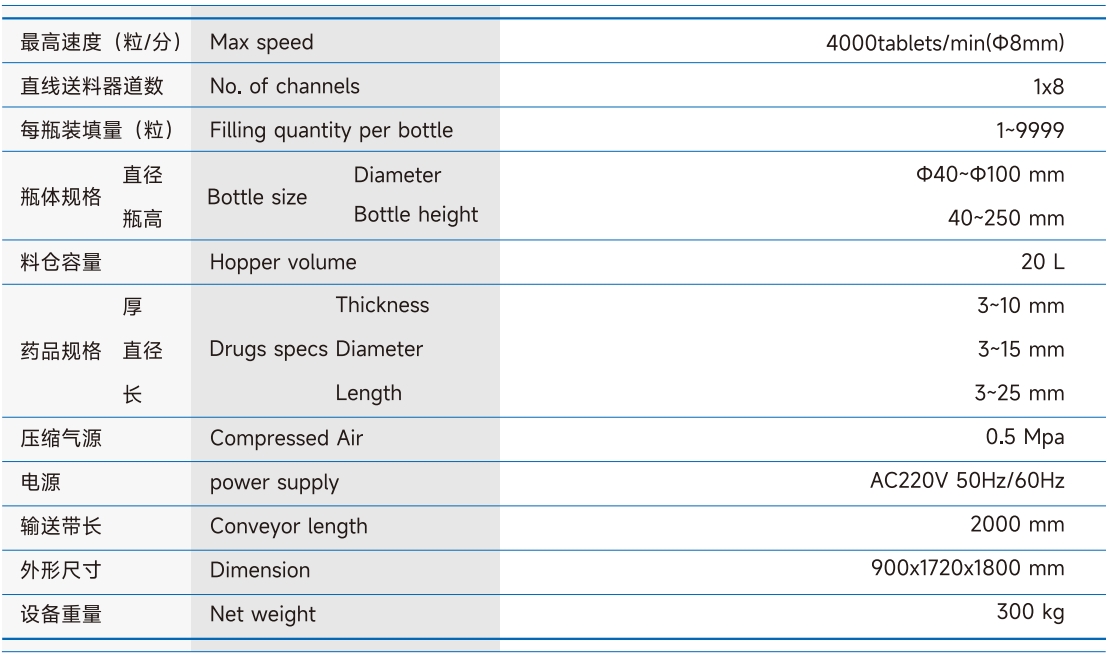 | 型号 | 最高速率 | 瓶盖规格 |