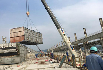 2017年9月18日福建青拓上克不锈钢无限公司冷酸炉壳吊装就位,标记着冷酸线装置施工起头。