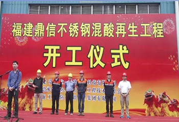 2016年9月13日福建鼎信科技无限公司不锈钢混酸再生工程进行完工典礼。